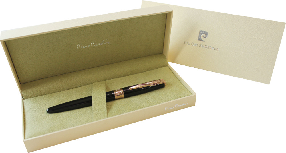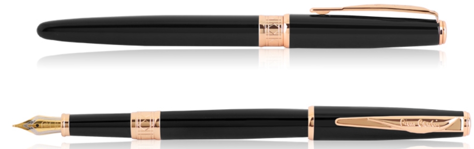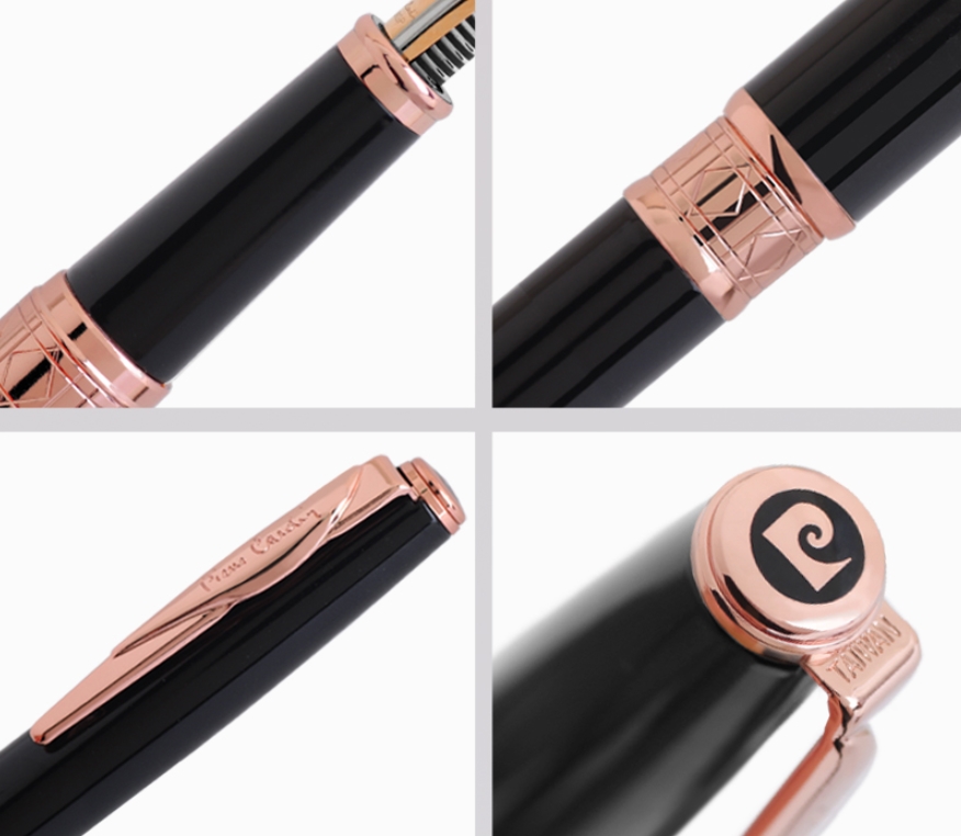 : 병잉크 및 카트리지 겸용 ■ 펜촉 : 스텐스틸에 금장문양을 넣은 투톤 F Nib ■ 캡/바디 : 황동에 블랙 락카도장 처리 ■ 장식부 : 로즈 골드 전기도금 ■ 캡 분리형으로 사용이 편리합니다. ■ 클립에 Pierre Cardin 로고를 인그레이빙 ■ 탑부 P로고 장식 ■ 중결링은 형이상학적인 문양으로 조각되었고 특히 P자를 형상화한 각인이 독특한 매력을 지닌 고급펜입니다. ■ 레이저(골드색상),실크,패드 인쇄가능 |