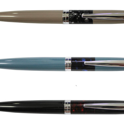 메탈에 블랙/브라운/웜그린 락카 도장 ■ 장식부 : 아크릴수지 ■ 리필 : 부드러운 필기감의 1.0mm TC ball (Germany) ■ 클립에 P자 로고 음각처리 ■ 레이저(골드색상),실크,패드 인쇄가능 |