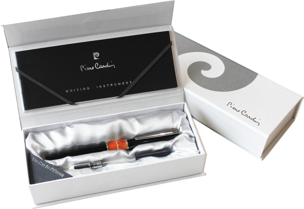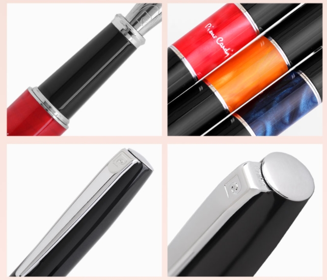 잉크방식: 병잉크 및 카트리지 겸용 ■ 펜촉: 스텐스틸에 크롬도금한 F Nib ■ 캡/바디: 메탈에 블랙락카 도장 ■ 장식부: 크롬도금 ■ 캡 분리형으로 사용이 간편합니다. ■ 화려한 오렌지색 아크릴 수지중결부에 Pierre Cardin을 프린팅하여 포인트를 살렸습니다. ■ 클립에 P자로고 음각처리 ■ 레이저(골드색상),실크,패드 인쇄가능 |