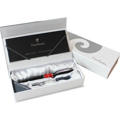 잉크방식: 병잉크 및 카트리지 겸용 ■ 펜촉: 스텐스틸에 크롬도금한 F Nib ■ 캡/바디: 메탈에 블랙락카 도장 ■ 장식부: 크롬도금 ■ 캡 분리형으로 사용이 간편합니다. ■ 화려한 레드 아크릴 수지중결부에 Pierre Cardin을 프린팅하여 포인트를 살렸습니다. ■ 클립에 P자로고 음각처리 ■ 레이저(골드색상),실크,패드 인쇄가능 |