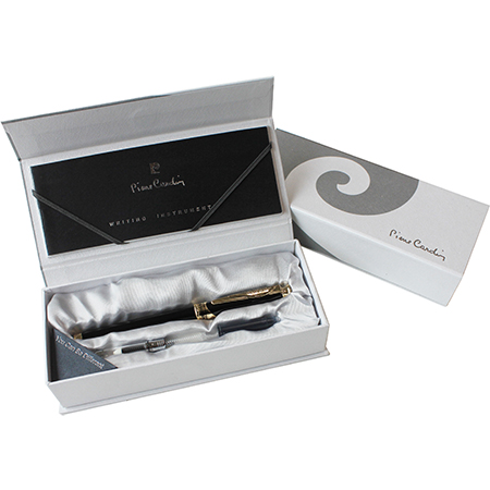 : 병잉크 및 카트리지 겸용 ■ 펜촉 : 스텐스틸에 금장문양을 넣은 투톤 F Nib ■ 캡/바디: 메탈에 블랙락카 도장 ■ 장식부 : 골드도금 ■ 캡 분리형으로 사용이 간편합니다. ■ 중결링에 JUPITER 목성 문양을 프린팅하여 포인트를 주었습니다. ■ 클립에 Pierre Cardin 로고를 음각으로 인그레이빙 |