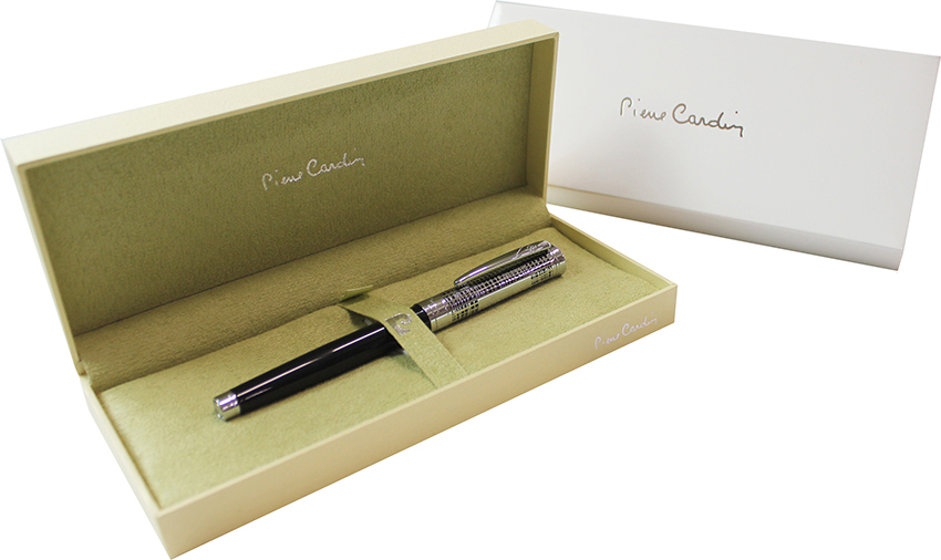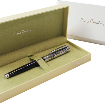 사용방식:캡분리타입. ■ 바디: 메탈에 고광택 블랙락카도장 ■ 탑부 원형P로고 장식 ■ 캡부: 에칭공법을이용하여 직물무늬를냄 ■ 펜촉: 주얼리문양 18KGP 투톤 F Nib ■ 레이저(골드색상),실크,패드 인쇄가능 |