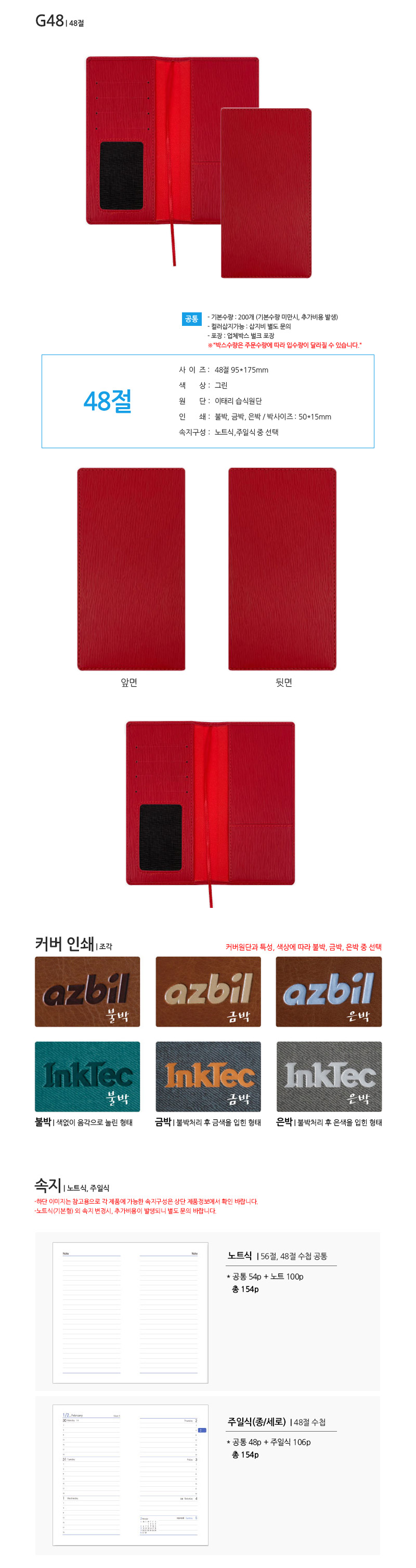 | 인쇄 | 커버박인쇄 | 재질 | 이미지참조 |
