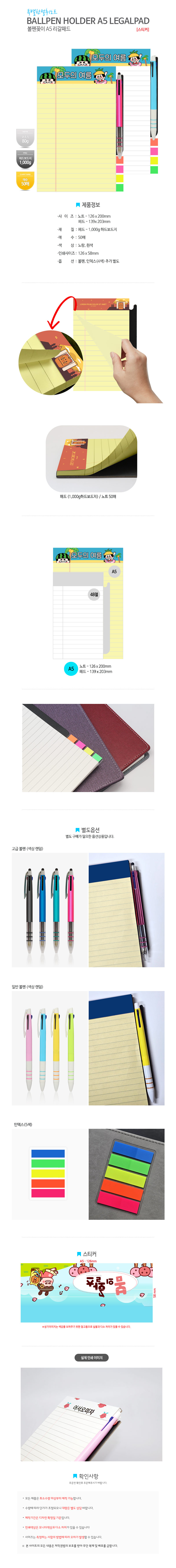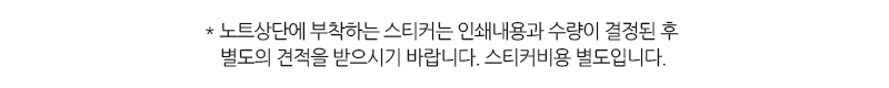 | 기타사항 | ★★노트 인쇄 시 판비는 자동계산되지 않습니다. 별도 문의 바랍니다. ★★볼펜 인쇄의 경우, 100개이상 1,000개미만 인쇄판비 별도입니다. 별도 문의 바랍니다. * 볼펜, 인덱스 미포함 상품입니다. * 볼펜종류는 일반볼펜과 고급볼펜 두 가지 입니다. |