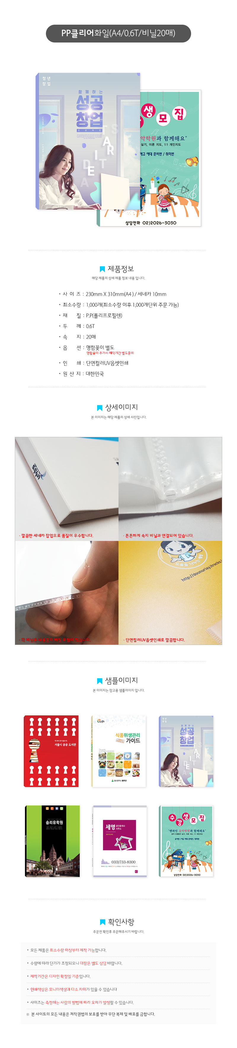 | 인쇄 | 단면컬러UV옵셋인쇄 | 재질 | PP / 0.6T / 비닐 20매 |
