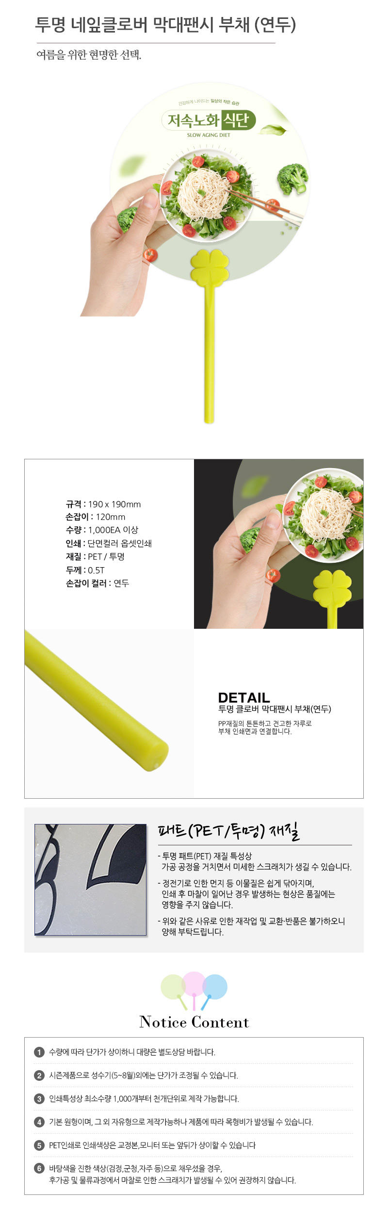 투명 원형 네잎클로버 막대팬시 (연두) 부채